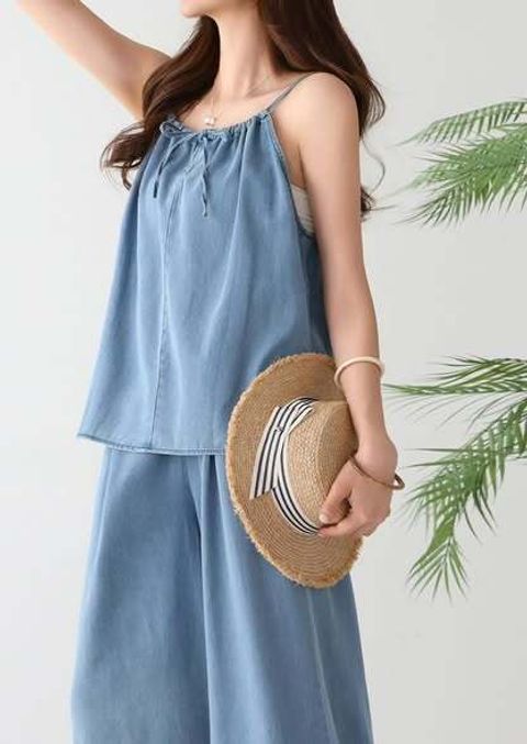 正韓圓領前短後長上衣&垂墜感寬直筒褲 套裝KGAR-PP-1208