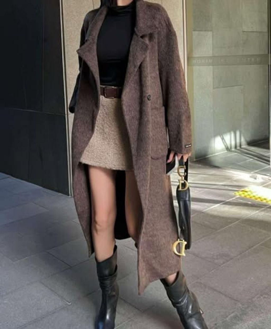 長袖薄針織打底 ➜ 超短/短裙(一定要短款!)➜ 中筒靴或長靴 ➜ 最後套上這件大衣=氣場 100 分