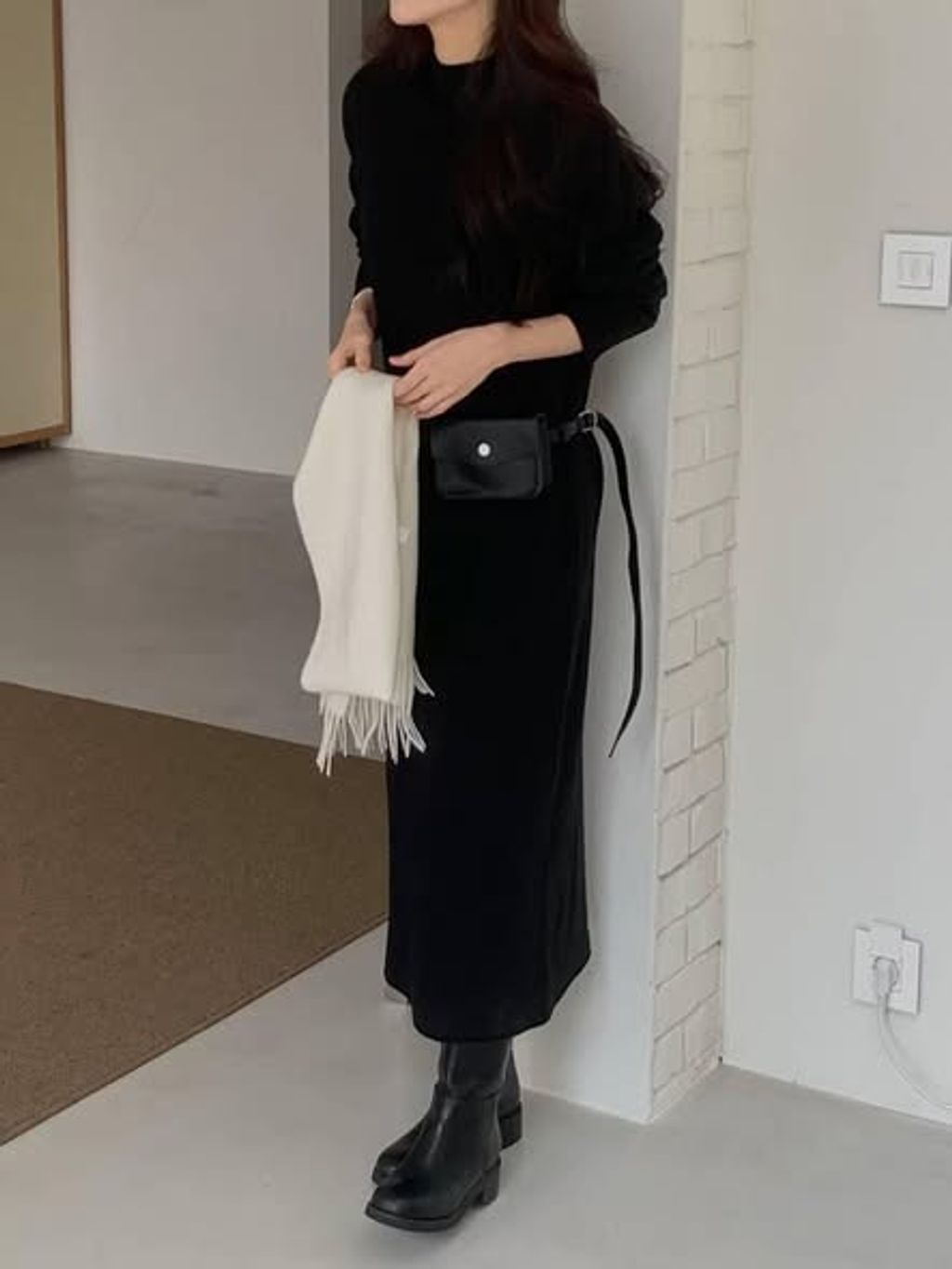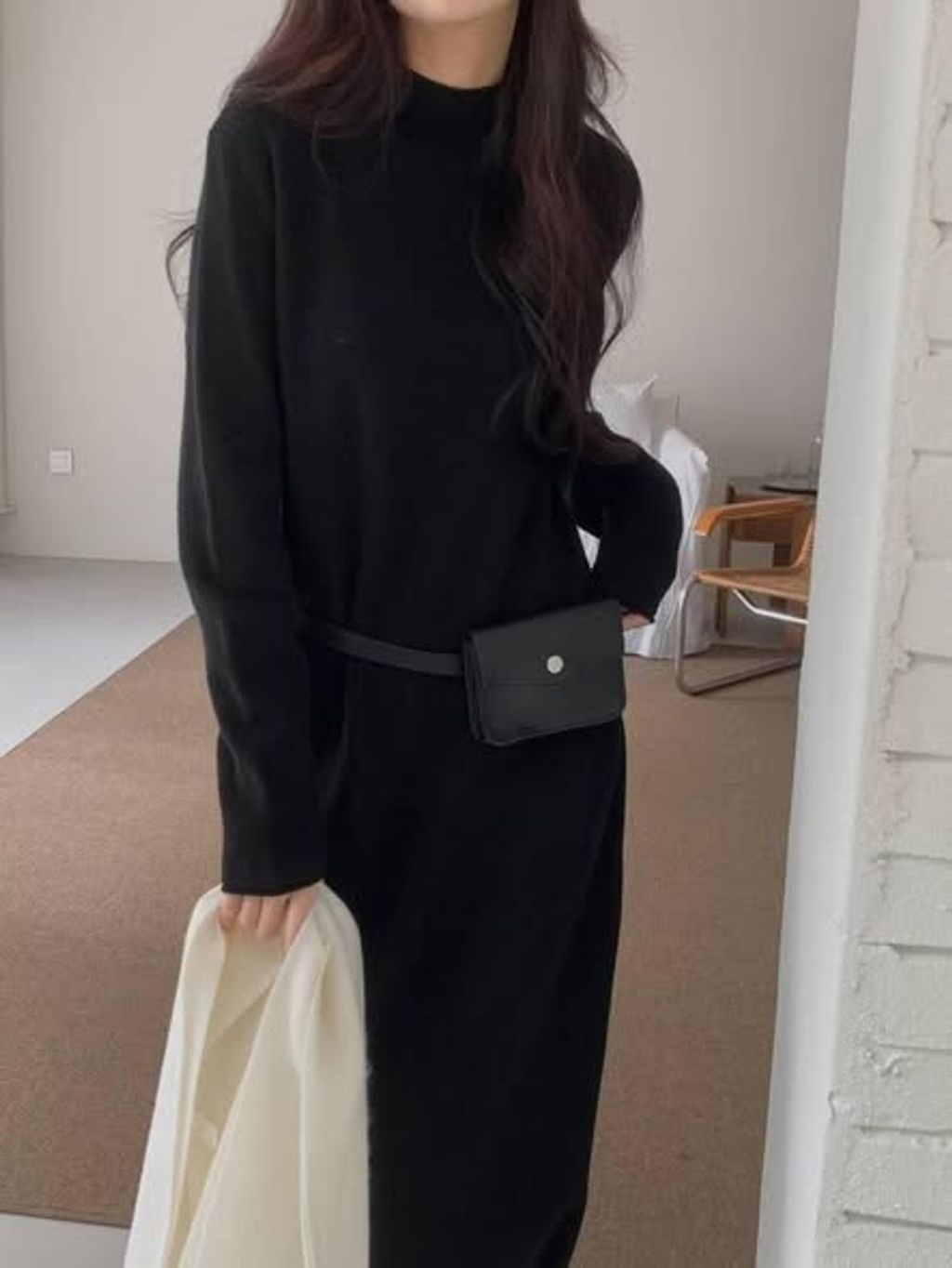 正韓優雅立領針織連身洋裝KGDRS-1103
