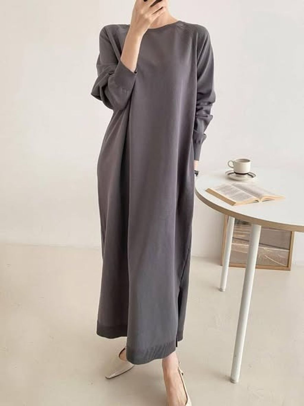 正韓優雅純色長版洋裝|$795