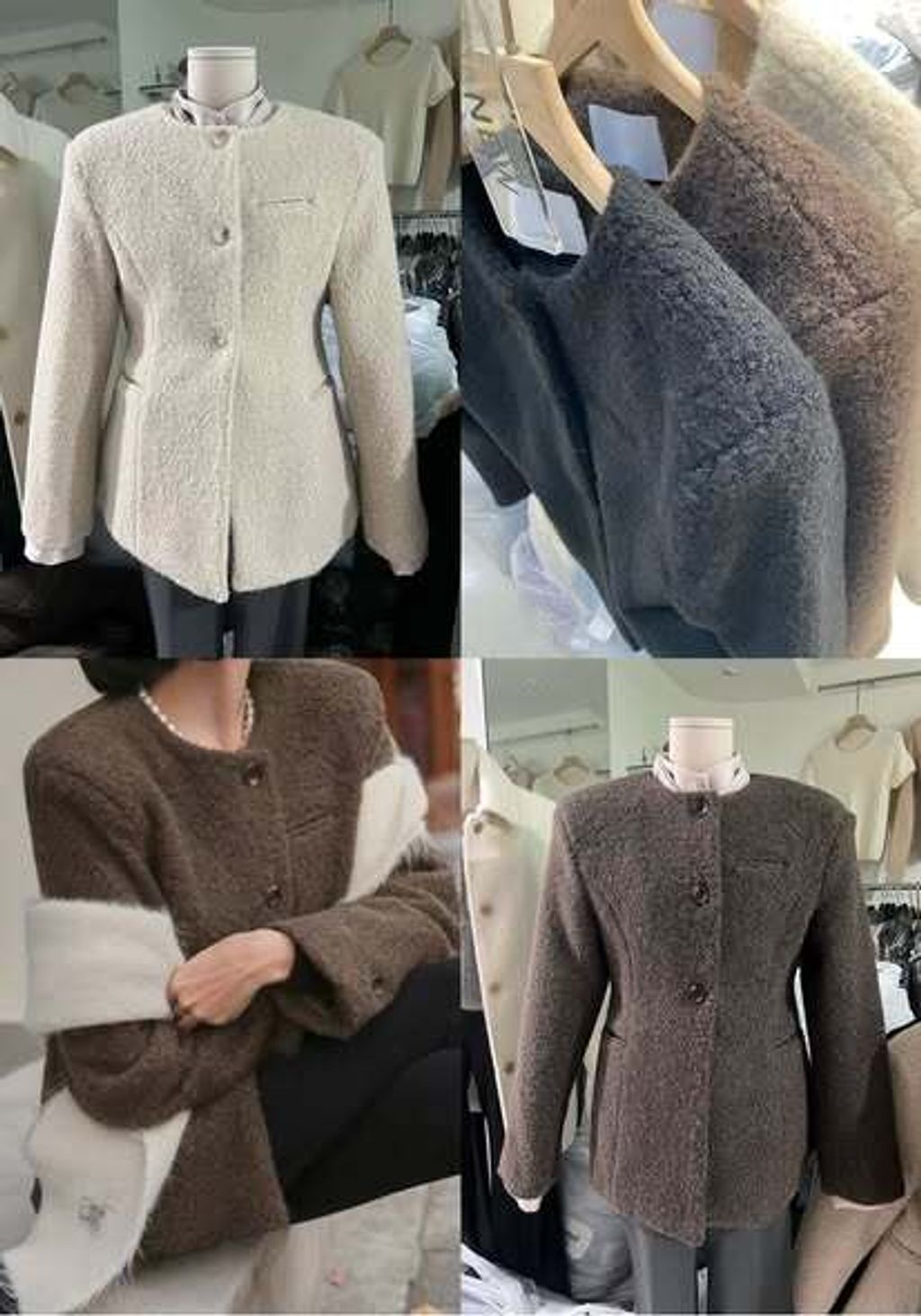 正韓優雅質感毛圈排釦修身大衣外套KGMRI-1222