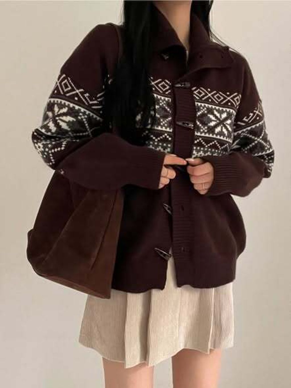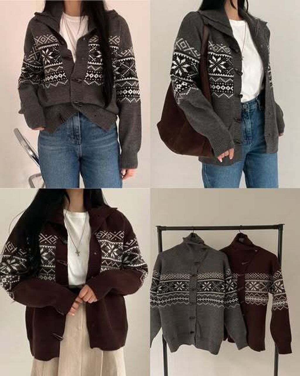 正韓北歐風圖騰針織罩衫外套|KGBIJ-1229