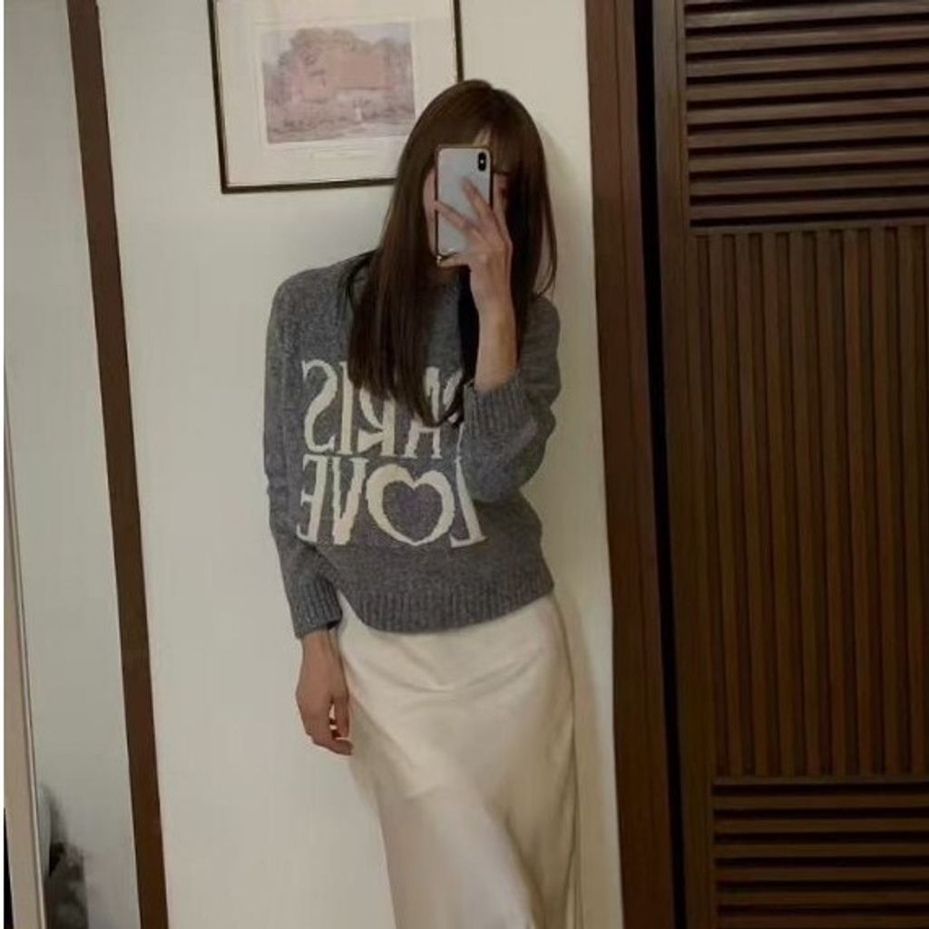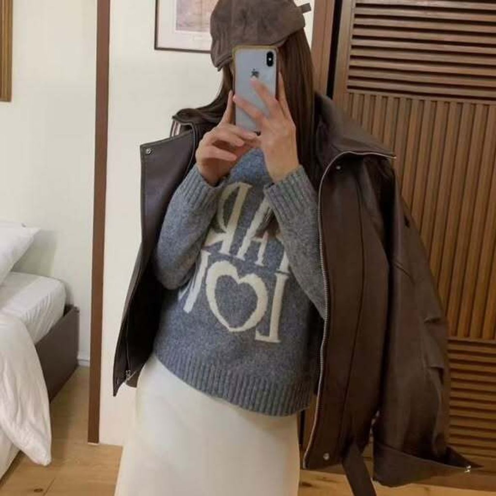 正韓圓領愛心字母上衣