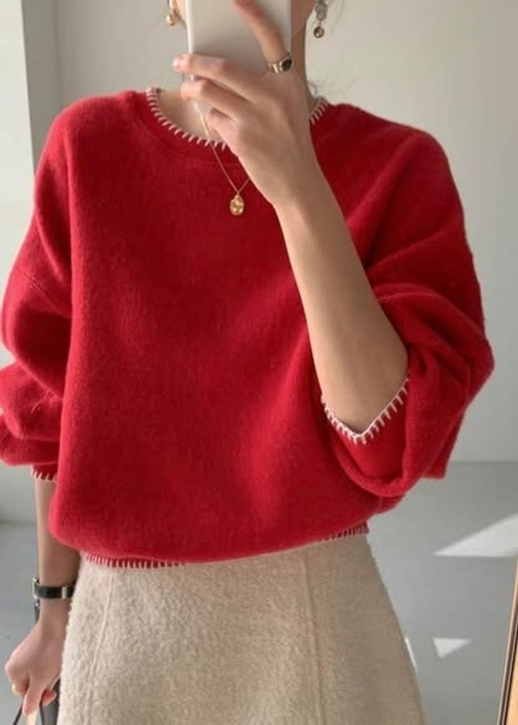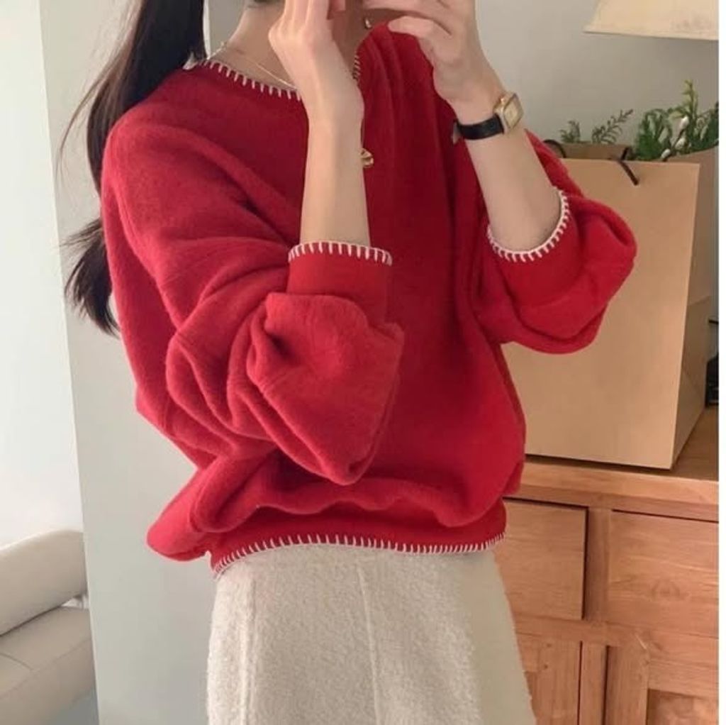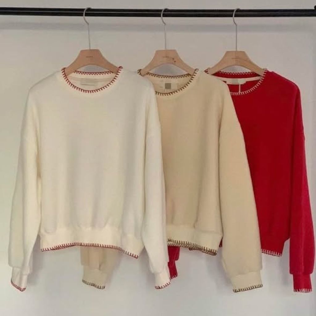 正韓圓領邊條配色毛衣上衣 $980