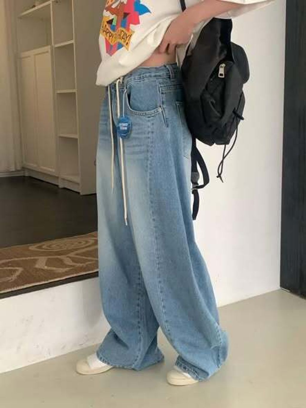 正韓抽繩刷色牛仔褲寬褲KGLVC-1229