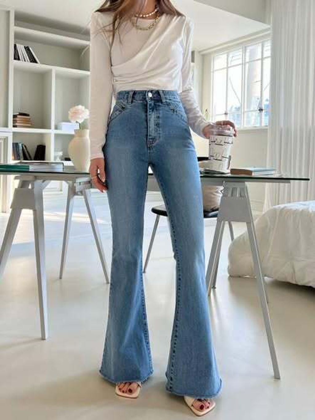 正韓極度顯修長靴型牛仔褲