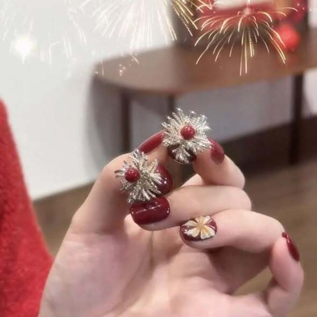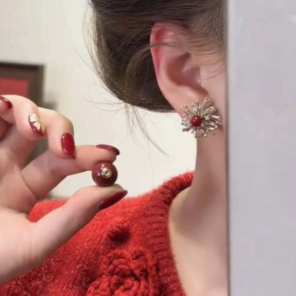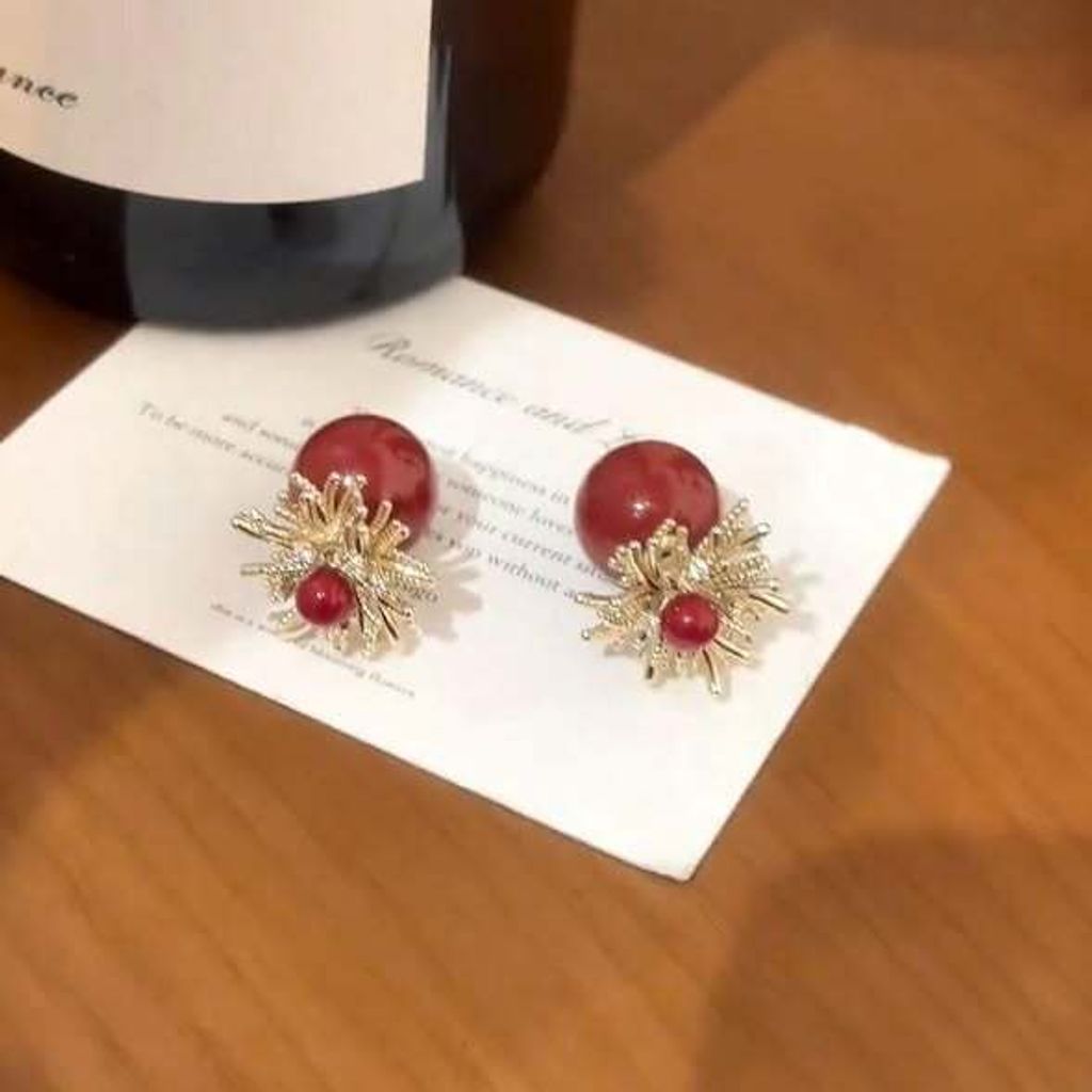 正韓煙花紅色珍珠雙頭耳環 $295