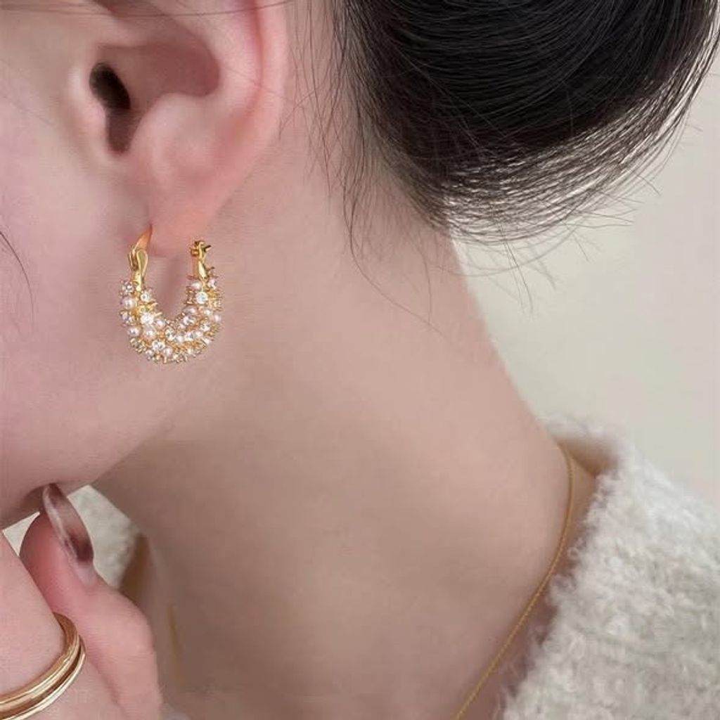 正韓珍珠U型耳扣耳環 $295