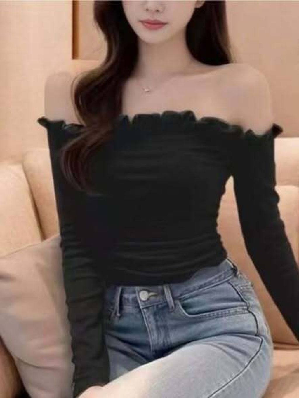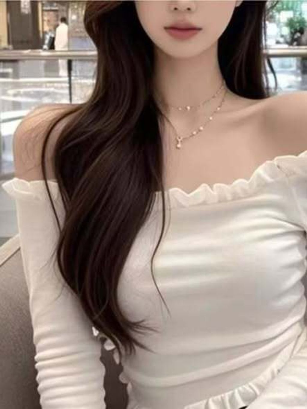 正韓甜美性感荷葉滾邊露肩長袖上衣|KGLRS-1229