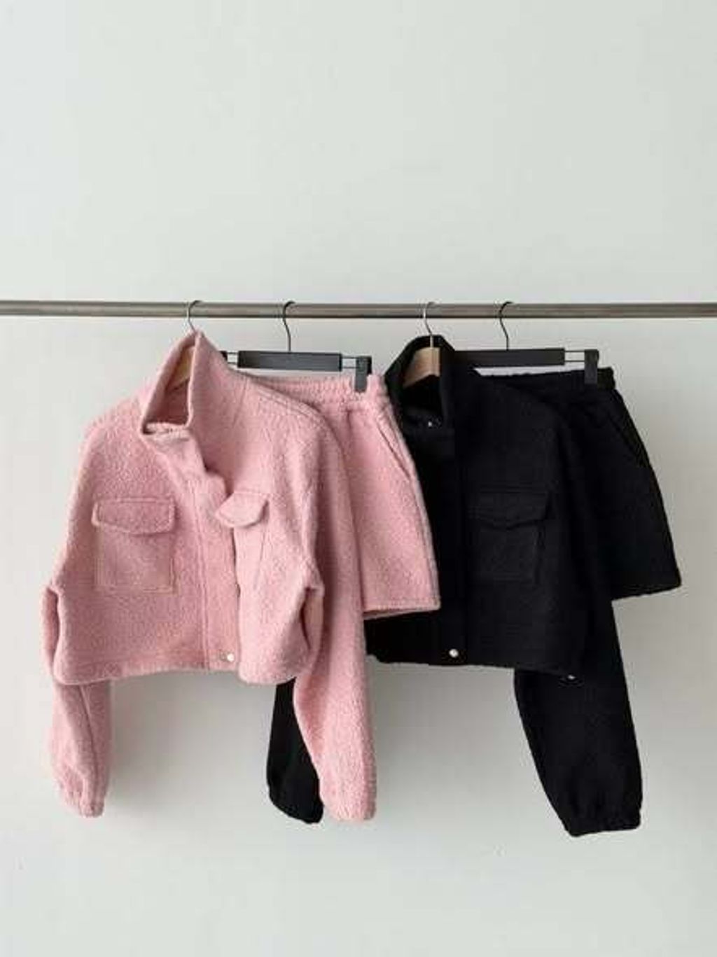 正韓立領毛呢雙口袋短版外套