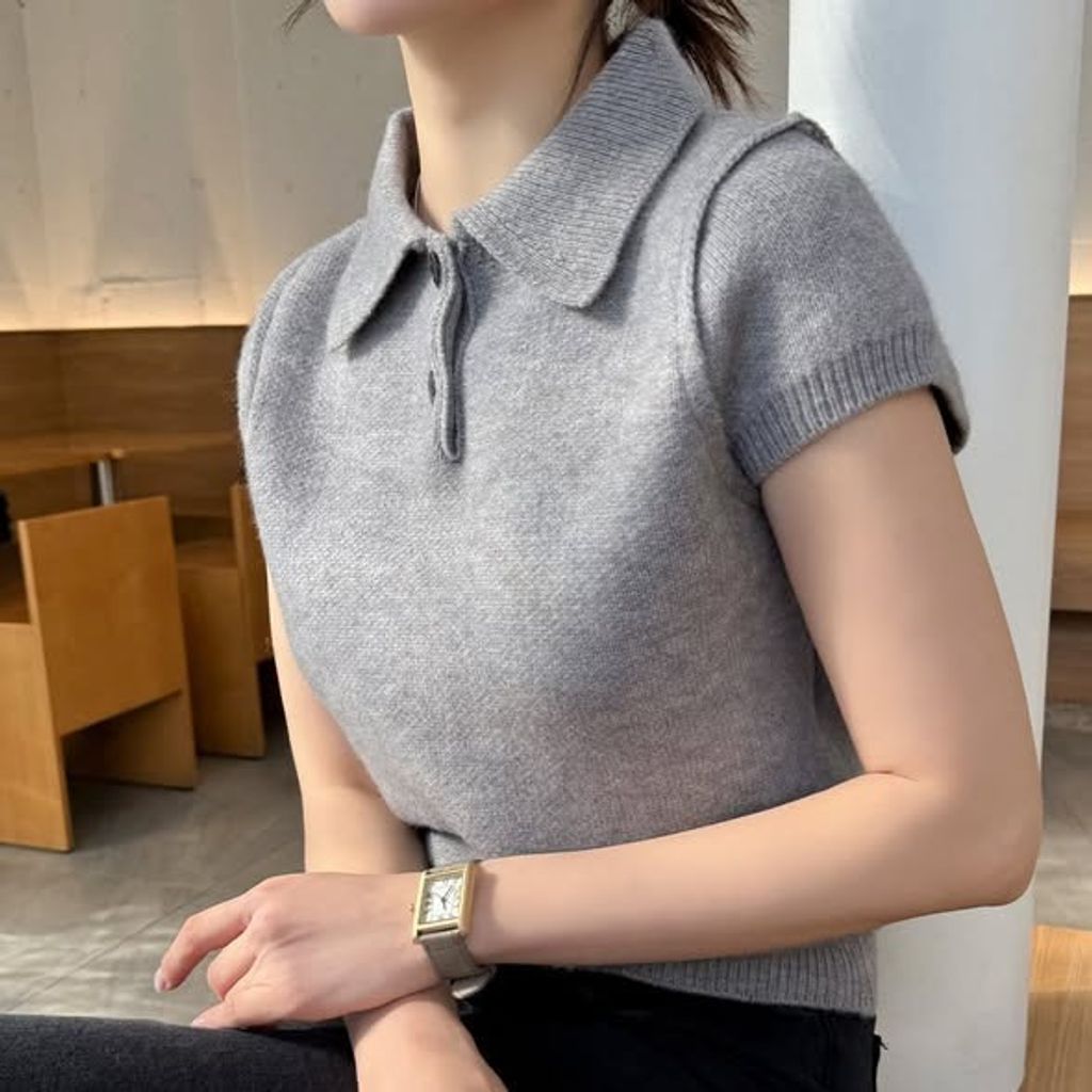 正韓翻領俏麗短袖上衣 $980