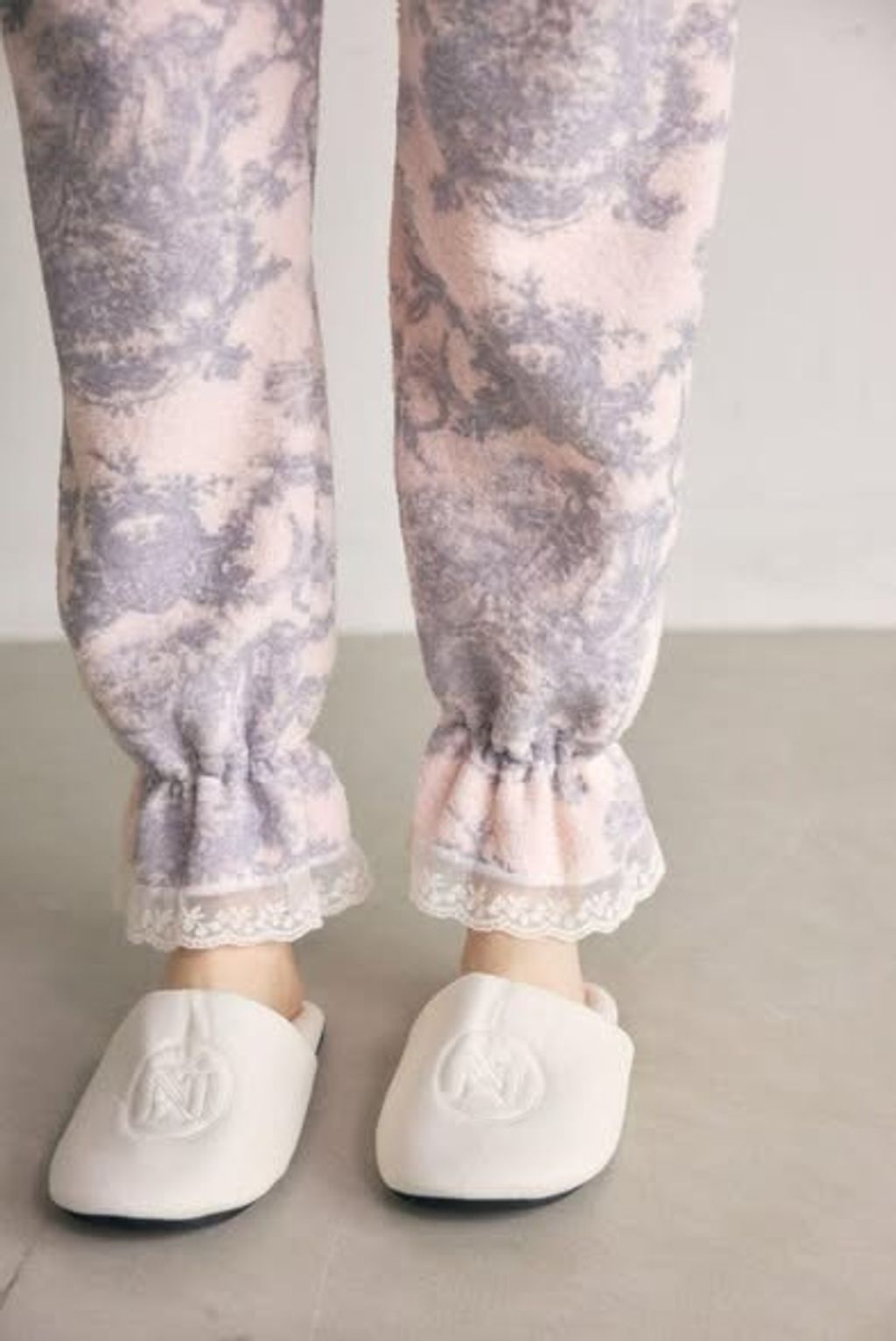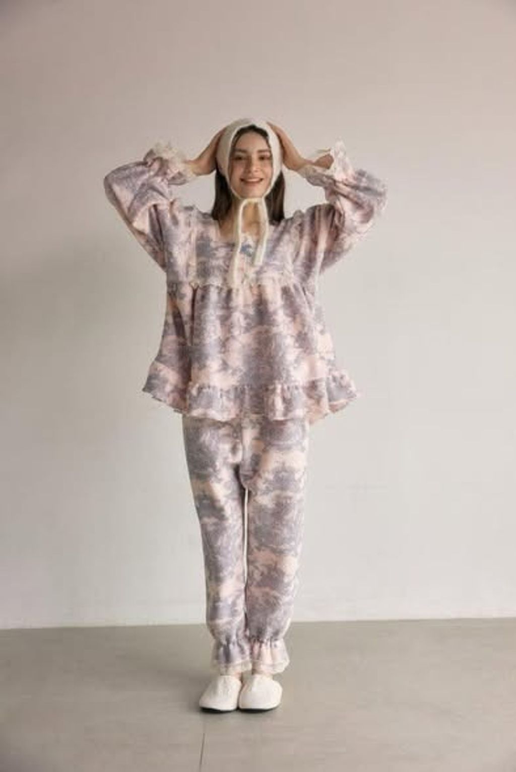 正韓荷葉滾邊圖騰上衣&束口長褲居家服套裝
