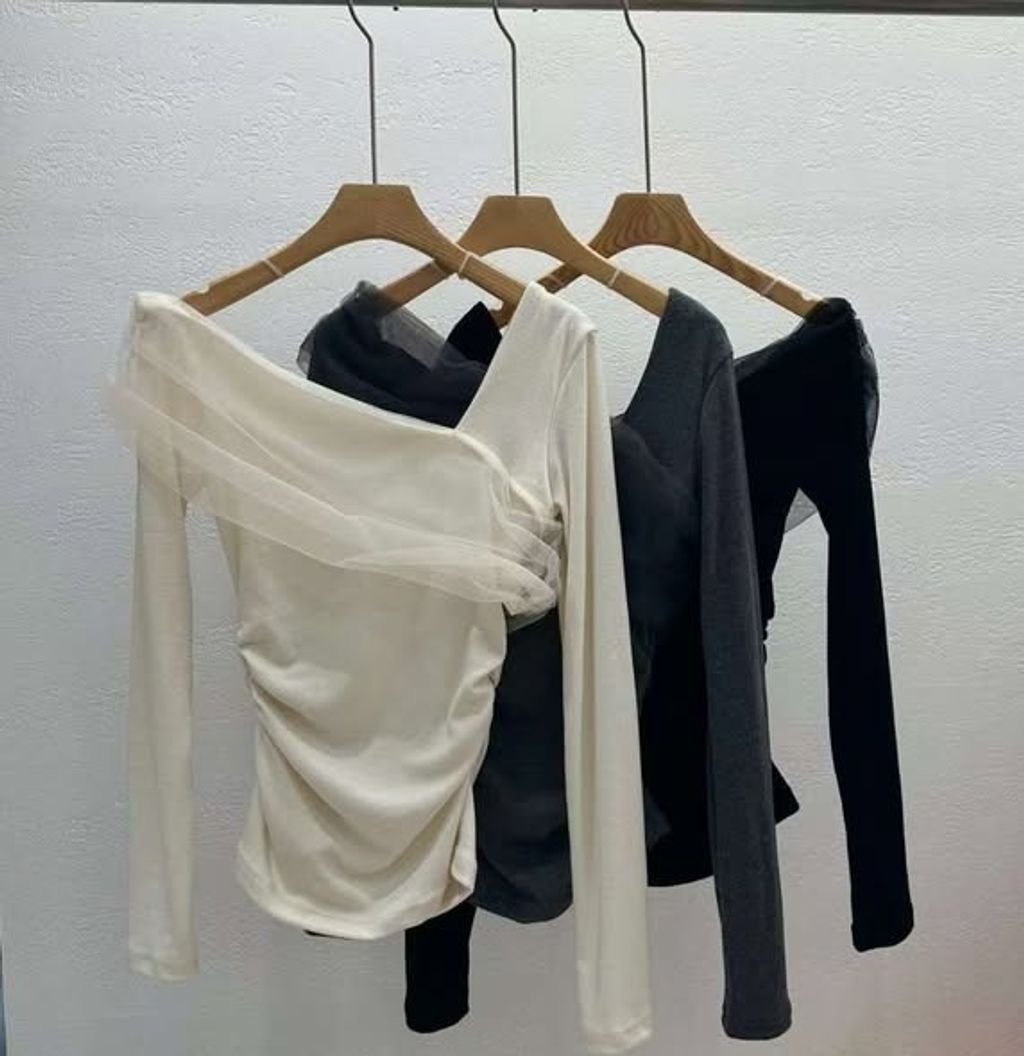 正韓透紗不規則斜露肩上衣BR1117-1754-1117