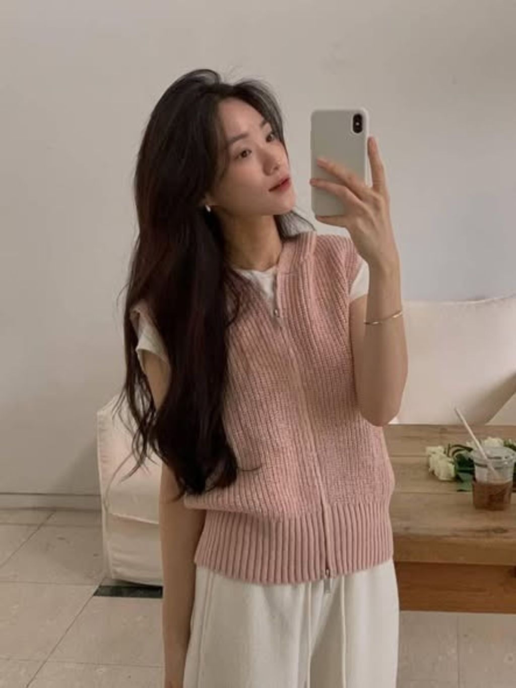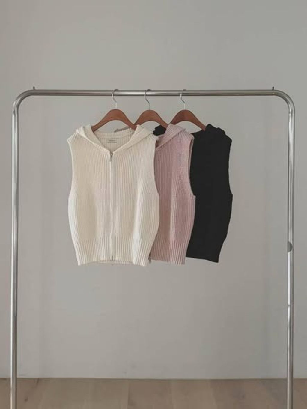 正韓連帽羅紋針織拉鍊背心