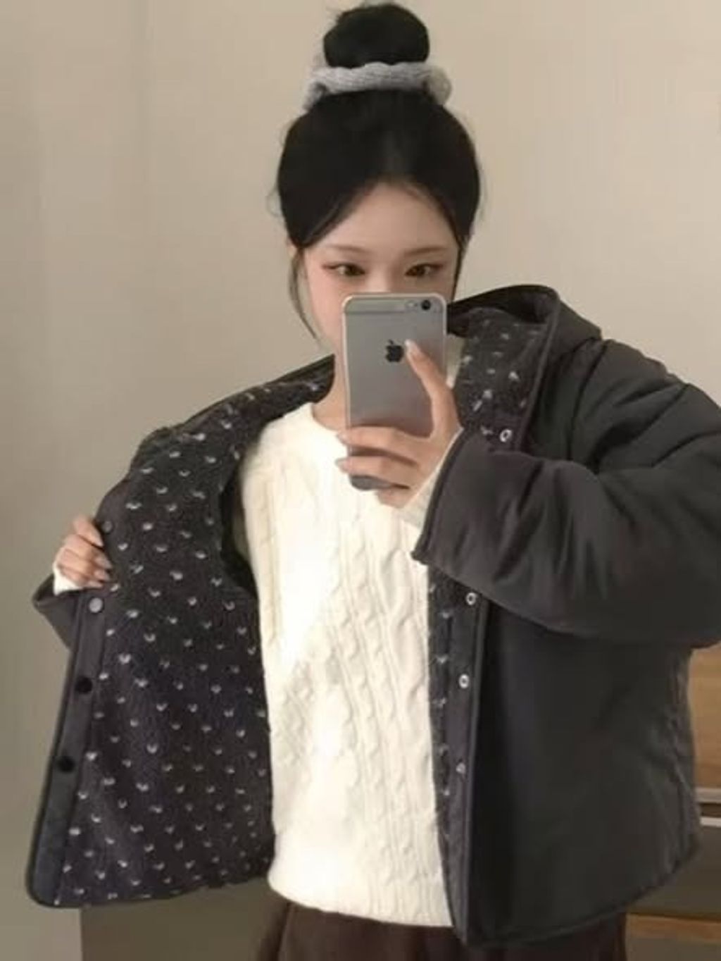 正韓配色圓點雙面可穿連帽羊羔絨棉外套KGTWS-1110