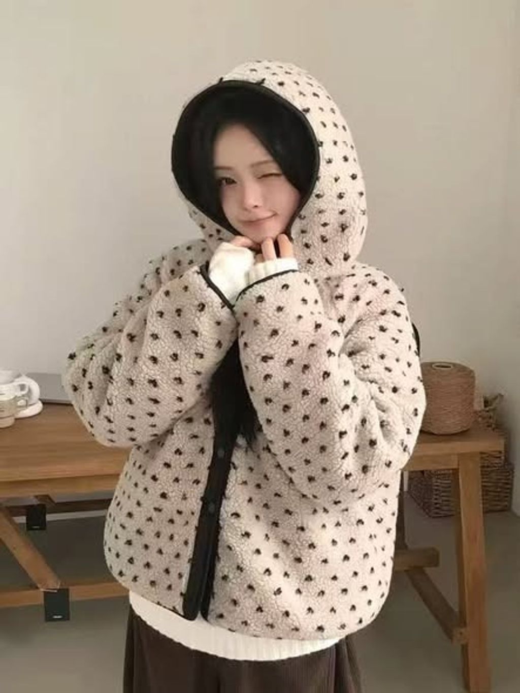 末圓點與連帽設計增添俏皮感,冬日可愛又保暖