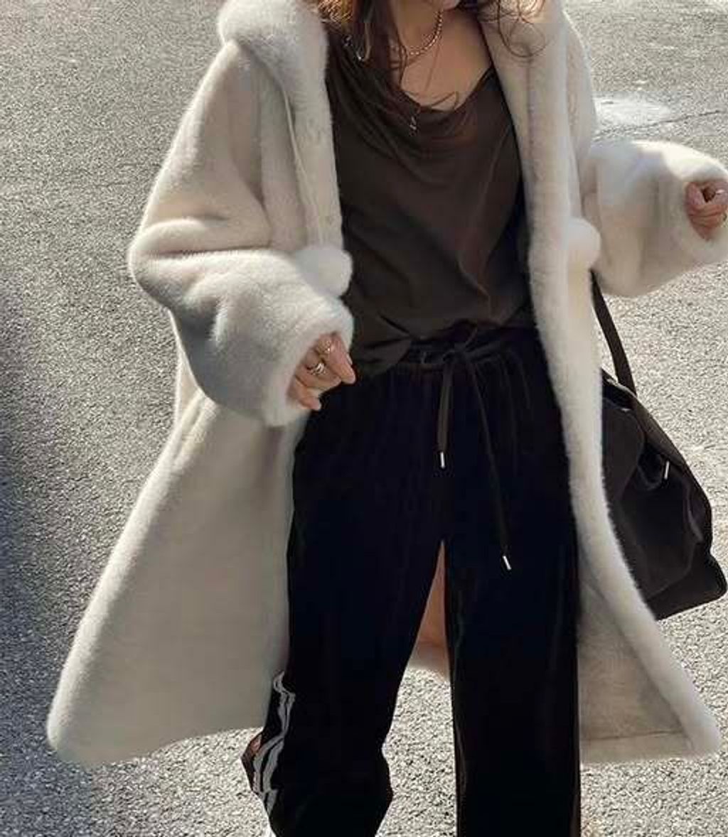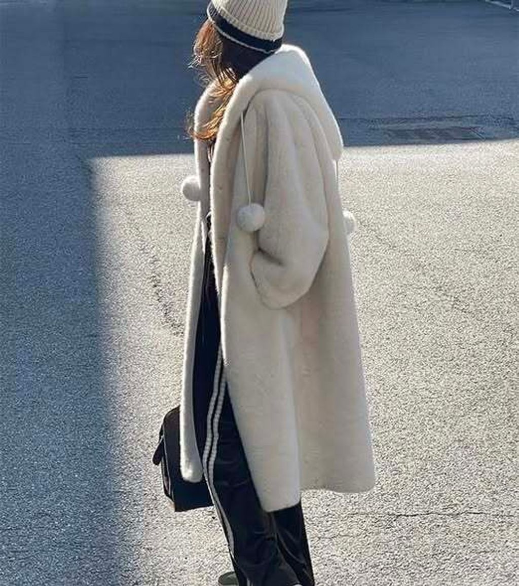 正韓長版連帽毛球外套