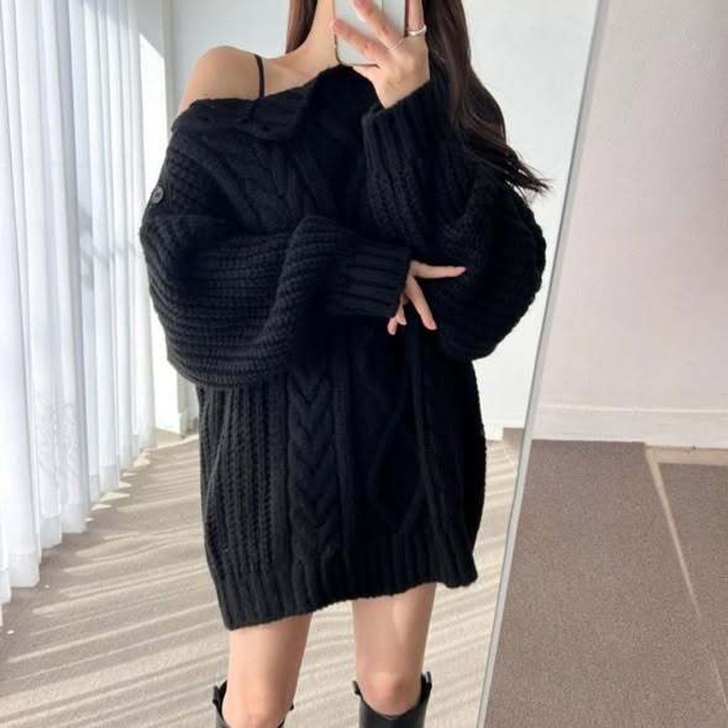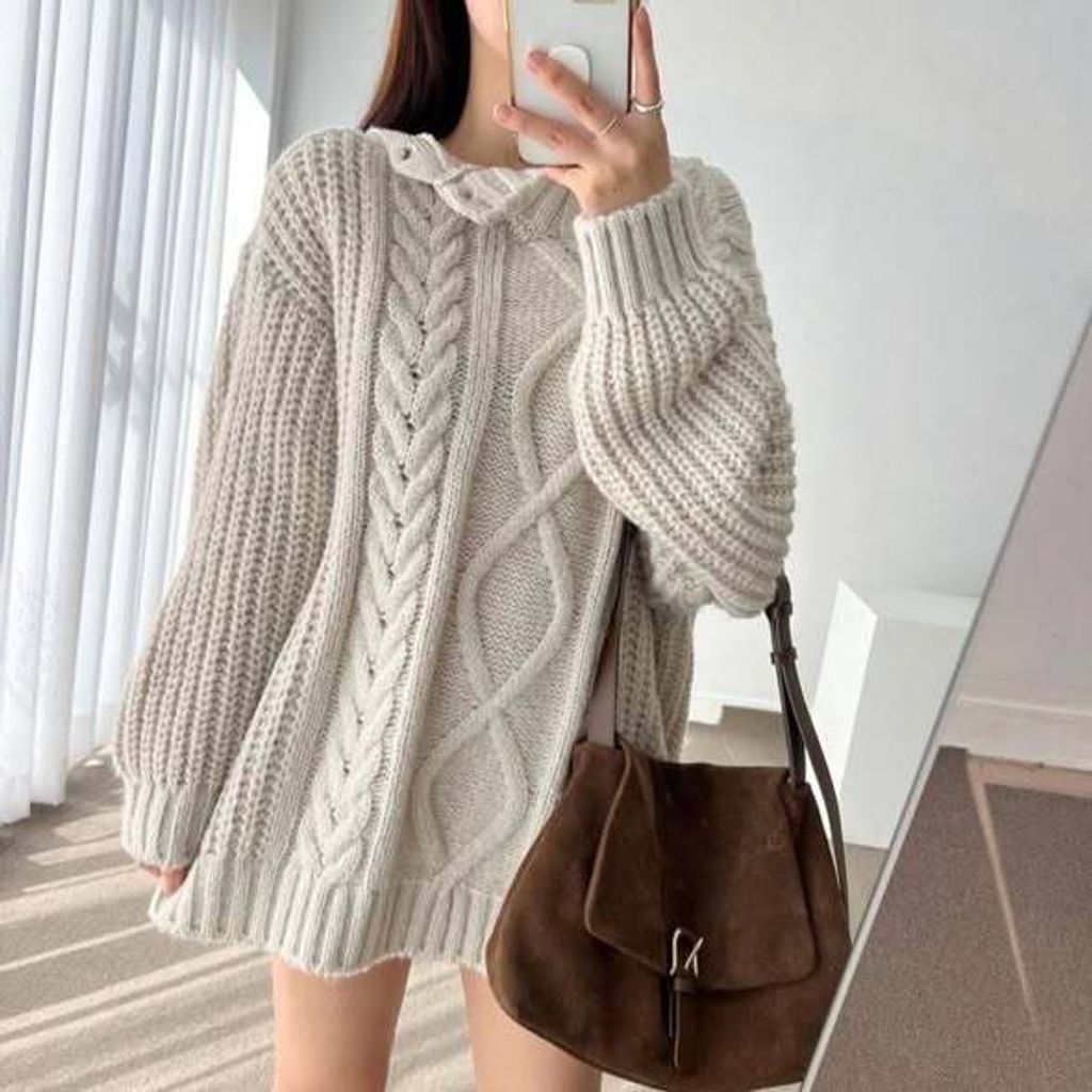 正韓露肩麻花毛衣 $1080