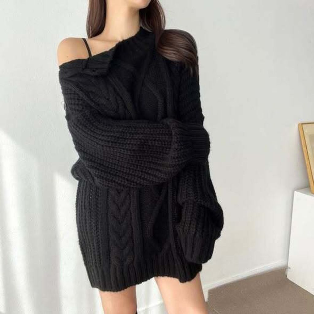 正韓露肩麻花毛衣 OP-1222