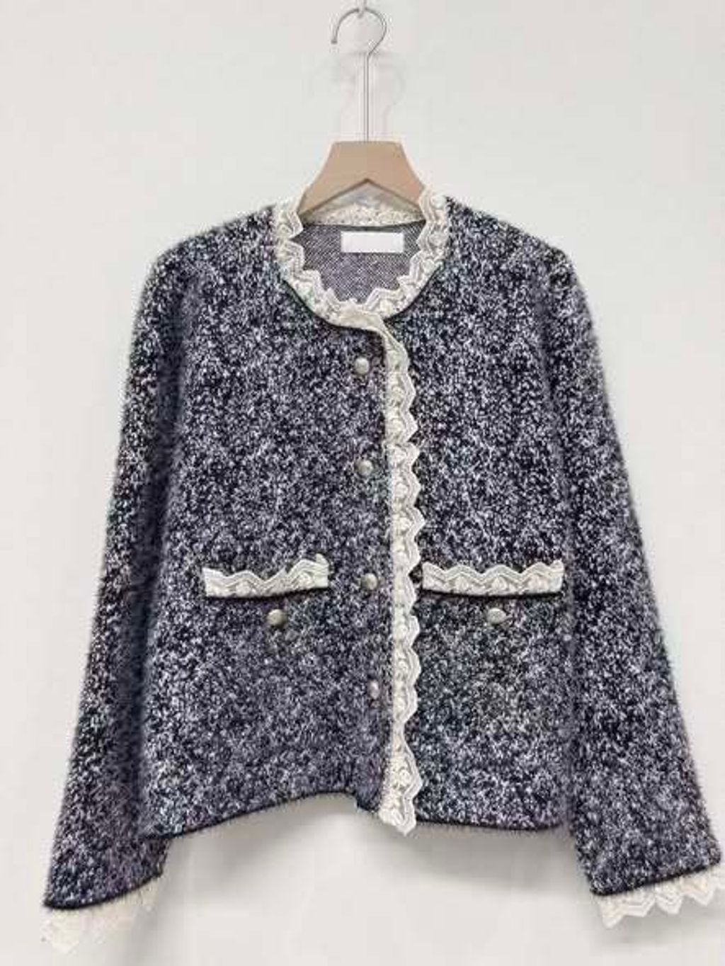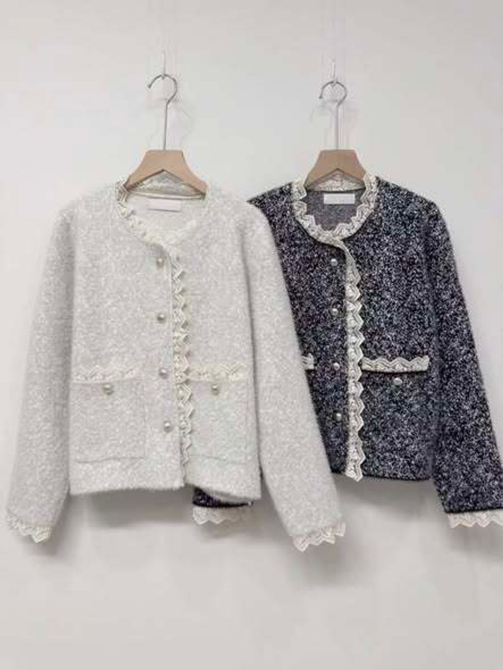 正韓高質感蕾絲滾邊毛料罩衫外套|$1180