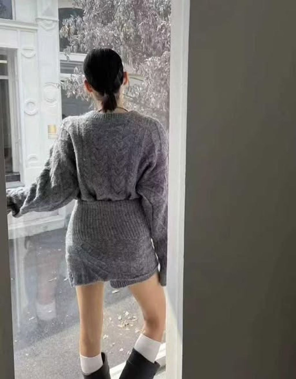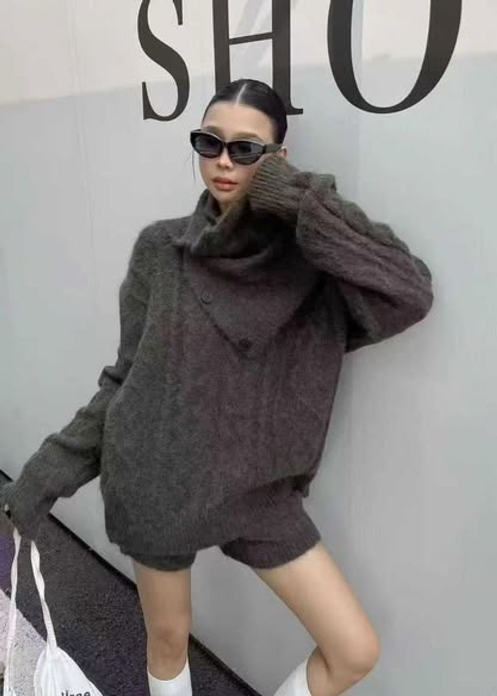 正韓麻花垂墜立領圍巾&圓領上衣&短褲套裝KGMTE-1117