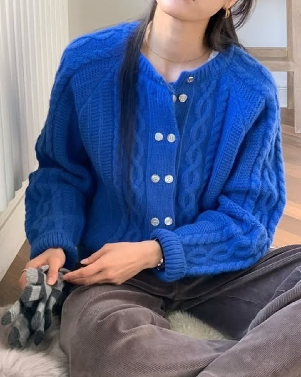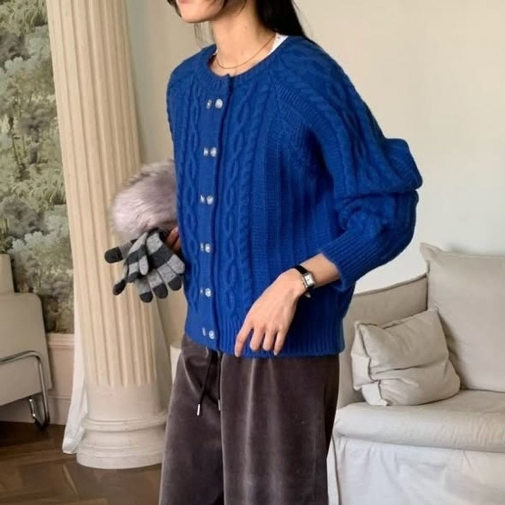 正韓麻花雙釦針織上衣 OP-1110