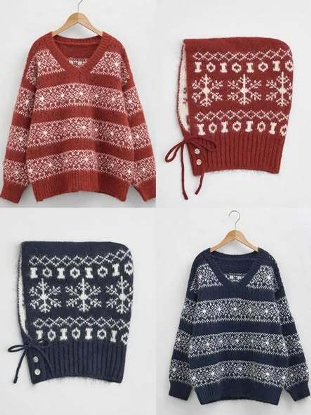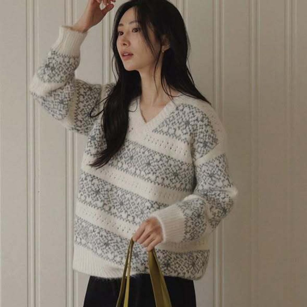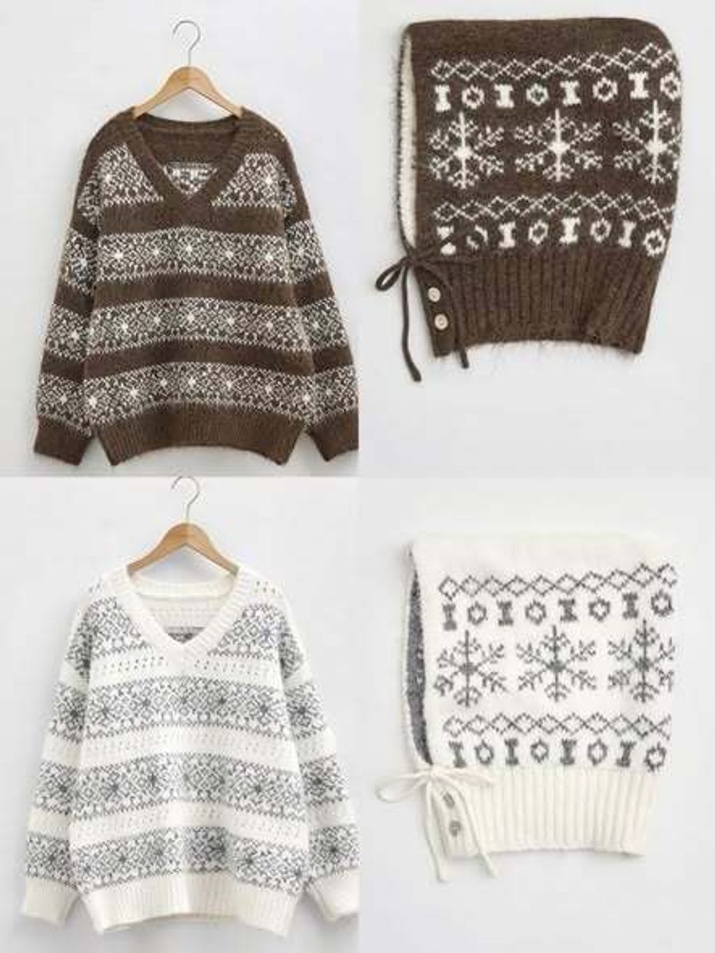 正韓V領雪花圖案針織上衣&雪花帽 套裝 PP-0105