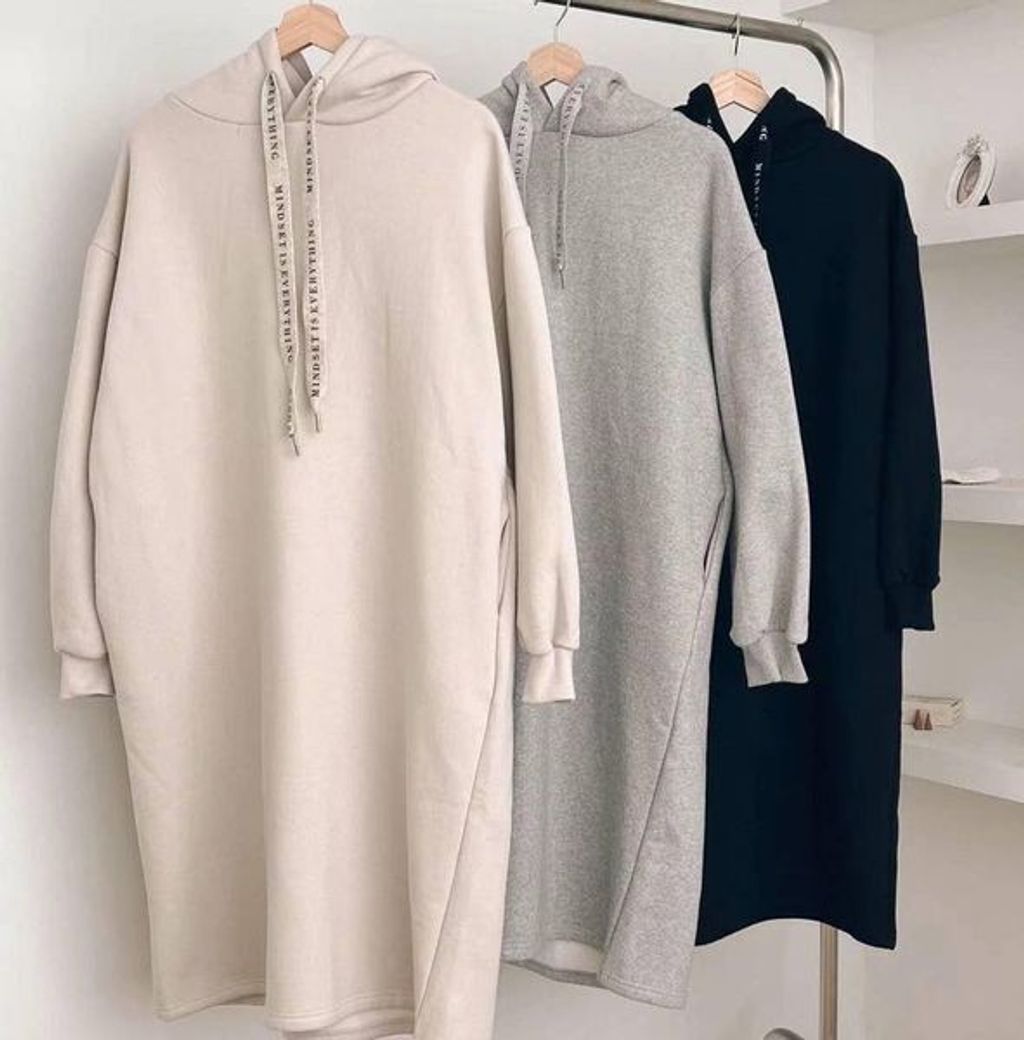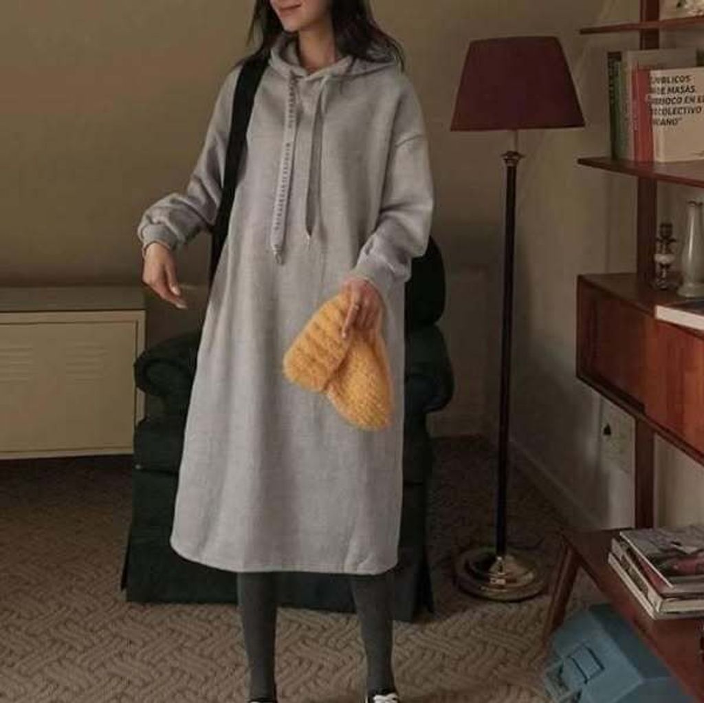 韓國🇰🇷兩口袋內刷毛絨休閒長版連帽洋裝PP-1229
