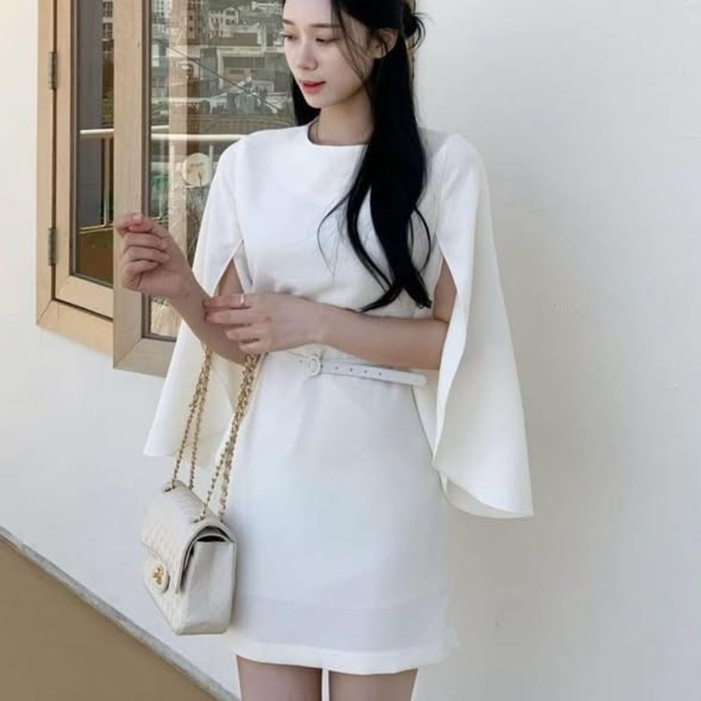 韓國直送🇰🇷披肩袖開衩氣質腰帶洋裝OP-1229